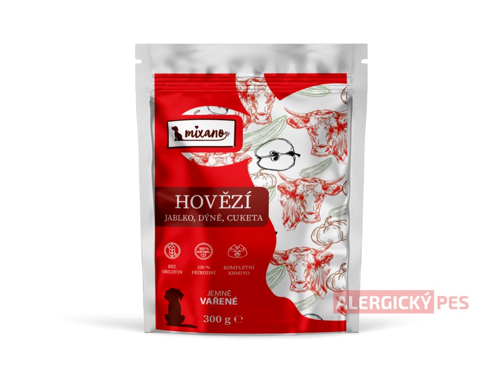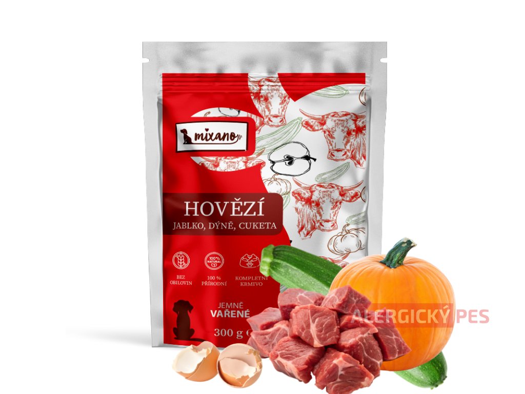 Jemně vařené hovězí Mixáno je kompletní masové krmivo připravené šetrným vařením při nízké teplotě, díky kterému si jednotlivé suroviny zachovávají maximum živin a získávají měkkou, snadno stravitelnou strukturu. Hovězí maso je přirozeným zdrojem kvalitních bílkovin, železa a dalších důležitých minerálů podporujících vitalitu a správnou funkci svalů.