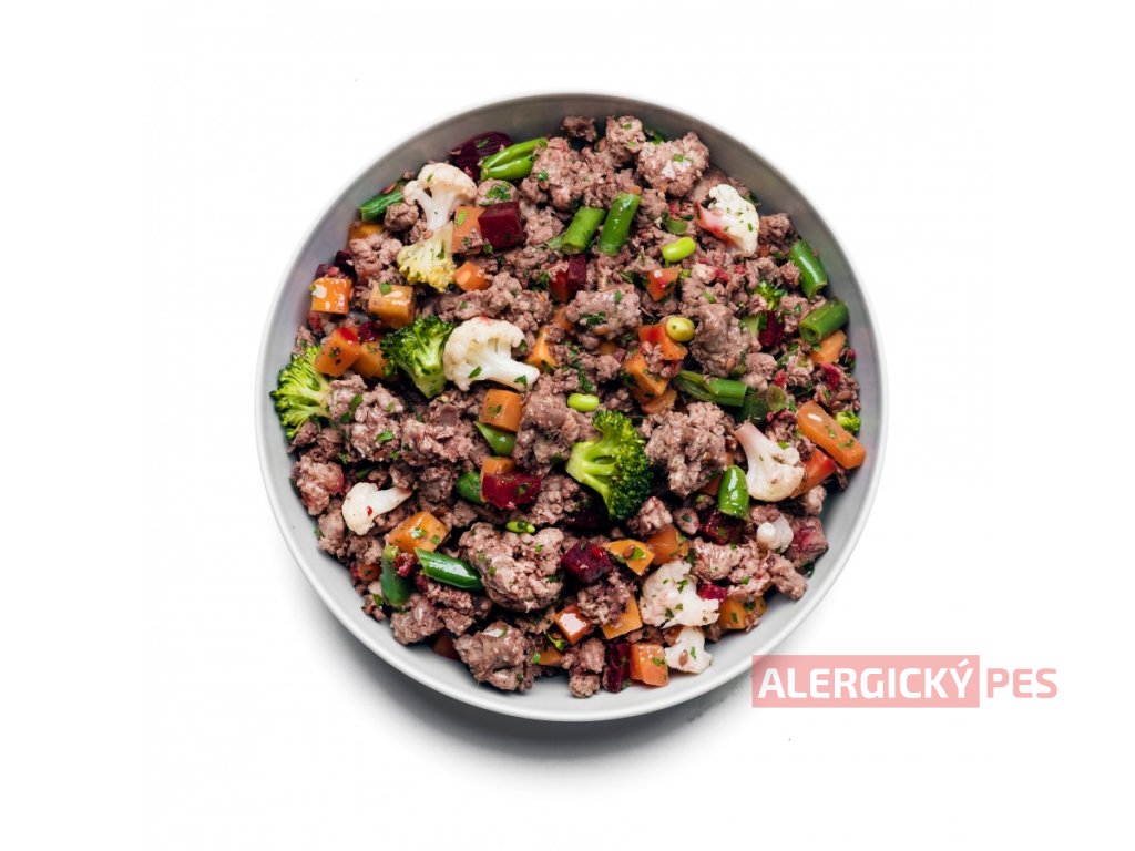 39% zelenina (mrkev, sladké brambory, červená čočka, fazolový lusk, květák a brokolice)
