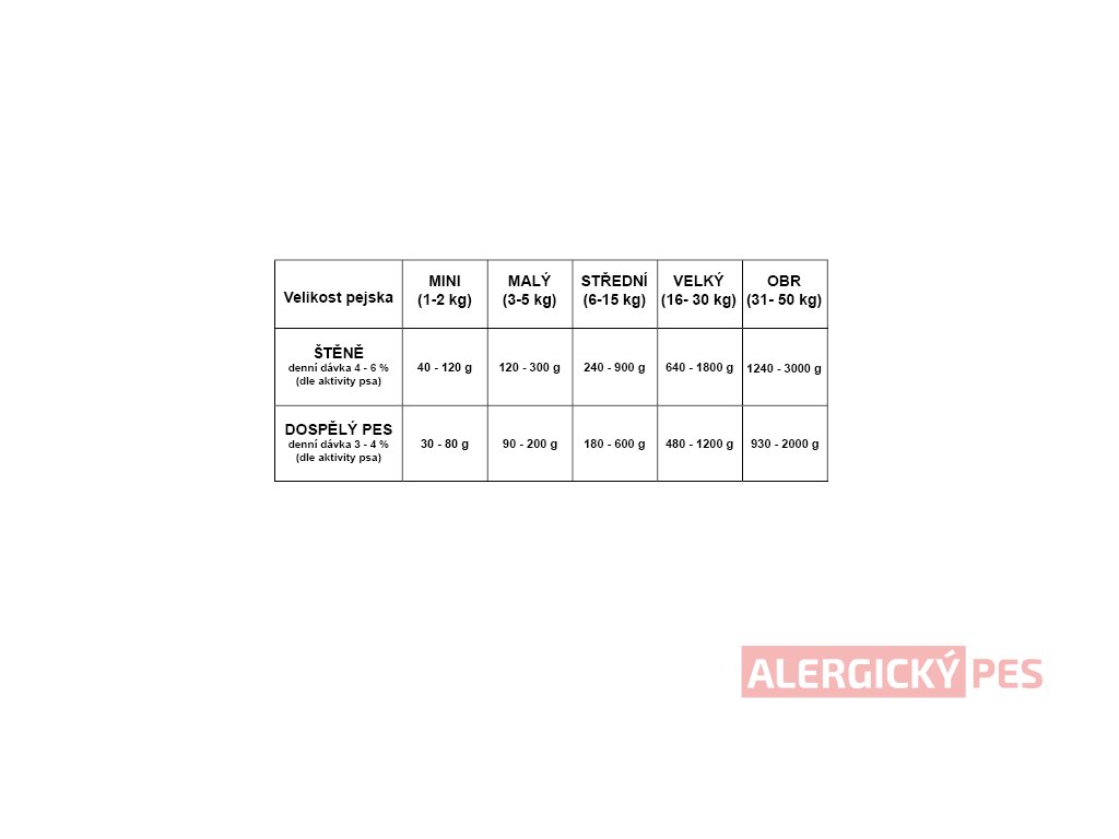 Dávkování vždy přizpůsobte tělesné kondici a aktivitě pejska.